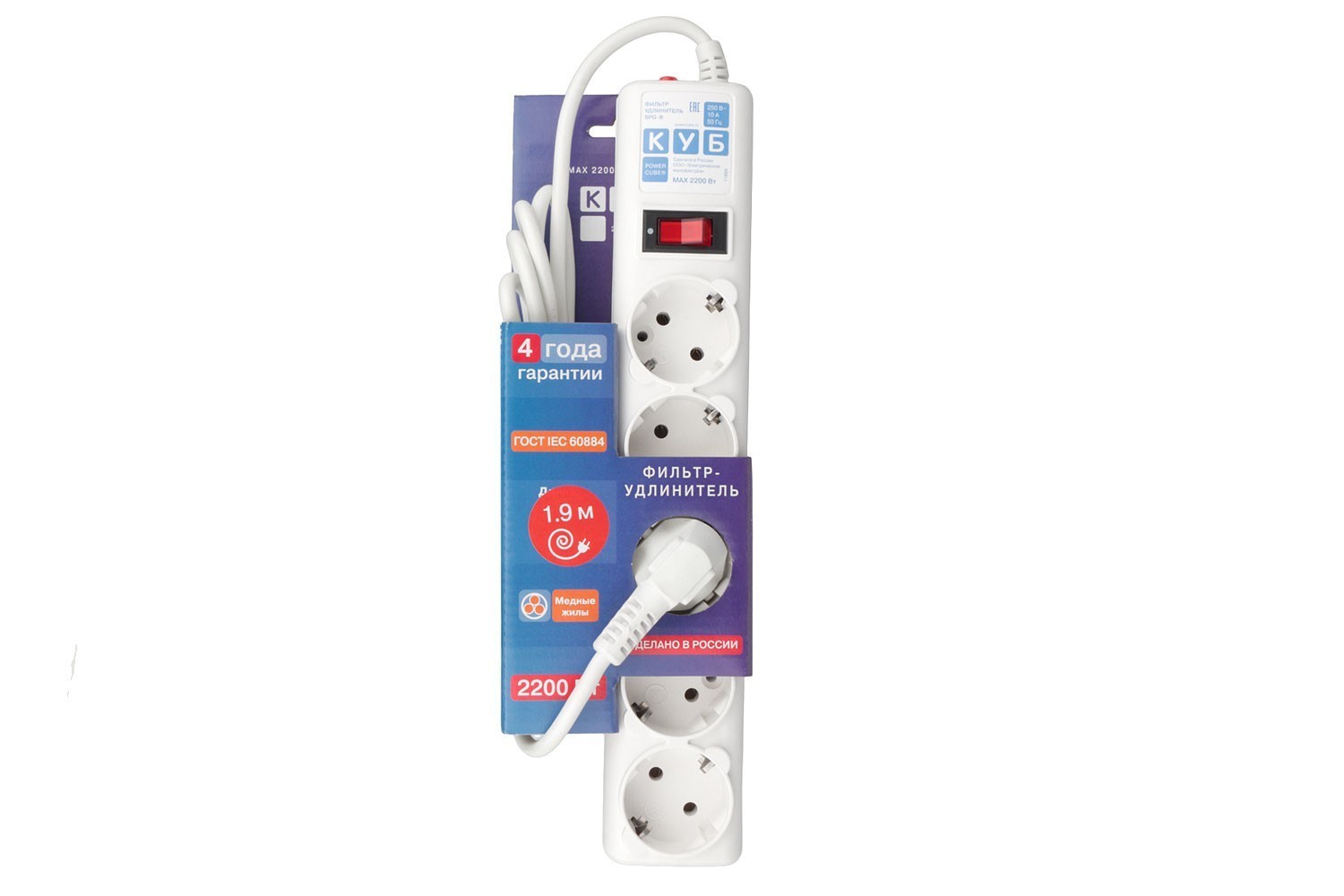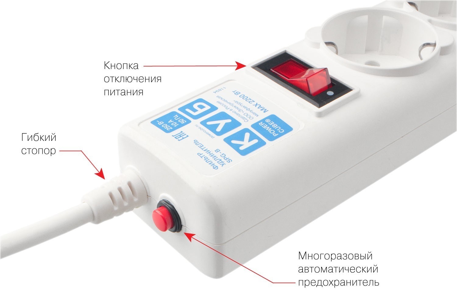 | SPG-B-6-WHITE | 1.9 м, 10 А/2,2 кВт, 3*0.75 мм² |