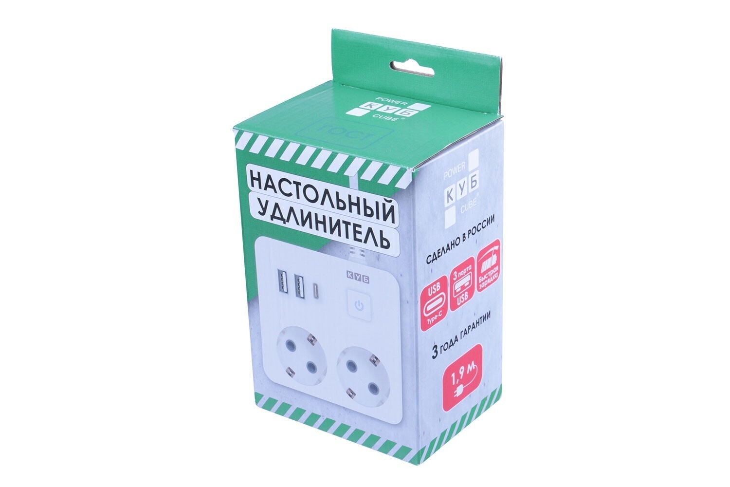 Удлинители КУБ 2 розетки, 3 USB-порта